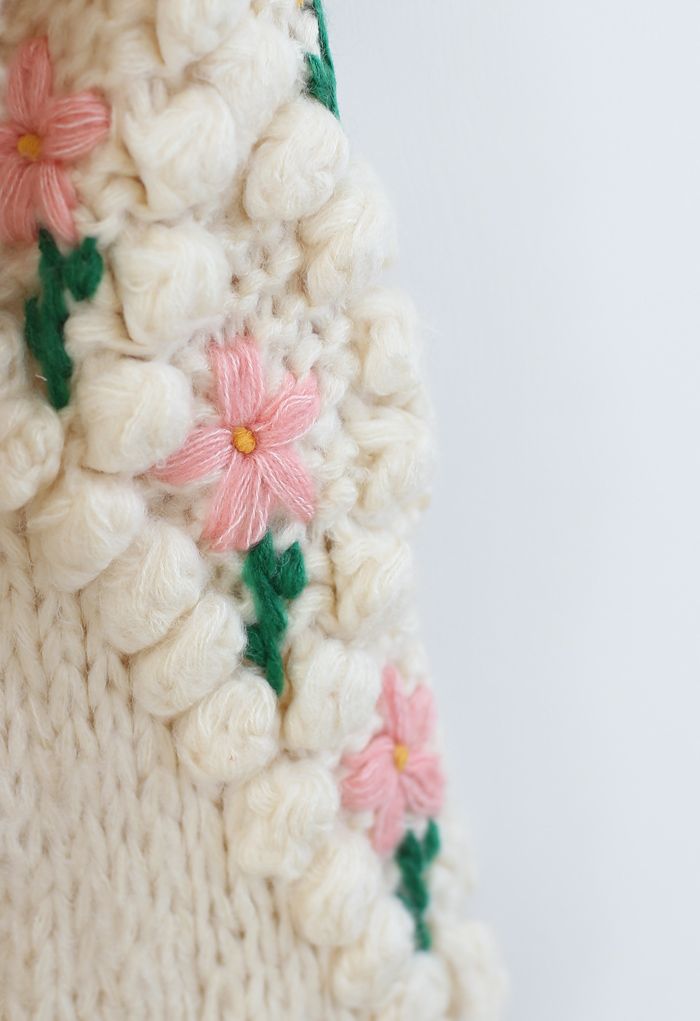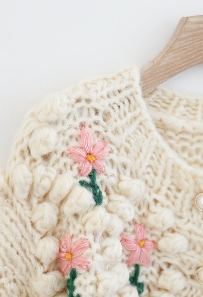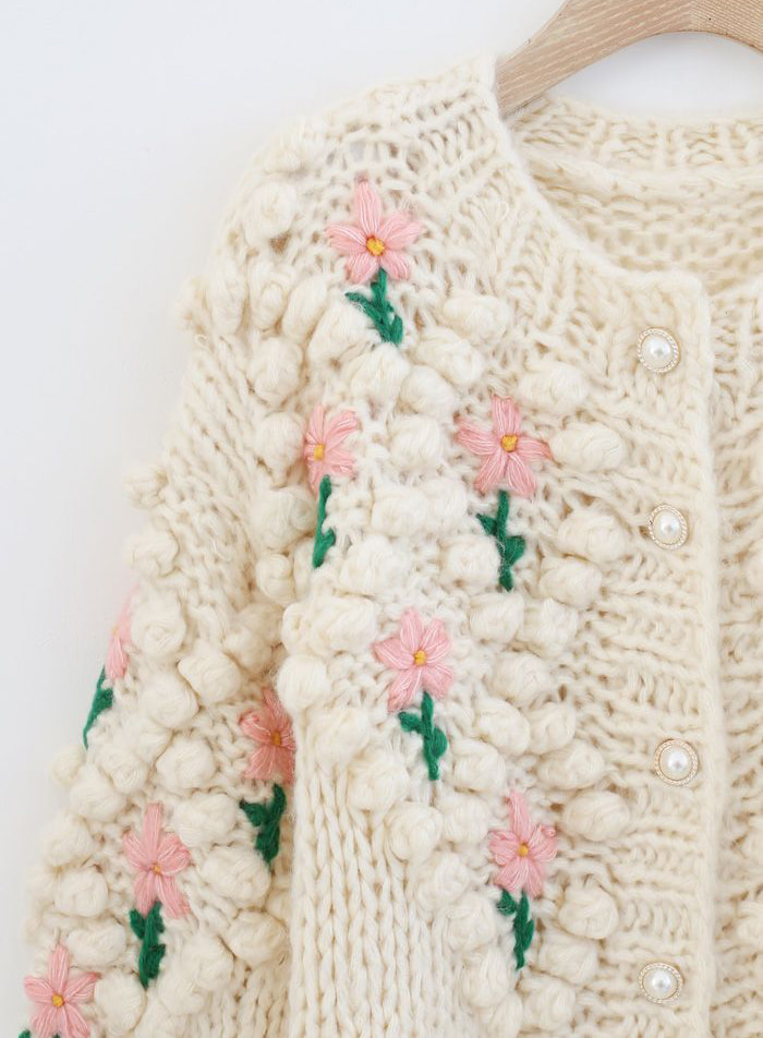 Hand Stitch Knit Floral Cardigan – Soft Structure Meets Artful Detail