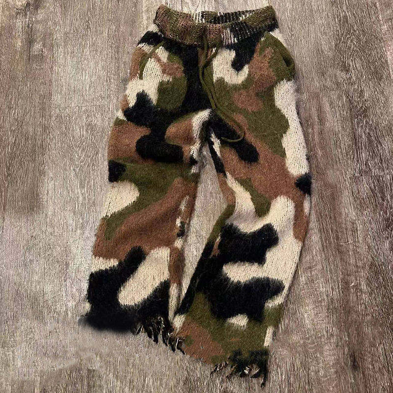 Featuring a striking camouflage palette and distressed hem, these sweatpants bring a handcrafted, street-ready aesthetic. Perfectly paired with oversized tees, hoodies, and layered knitwear, they offer bold visual contrast and urban style.