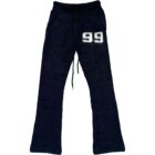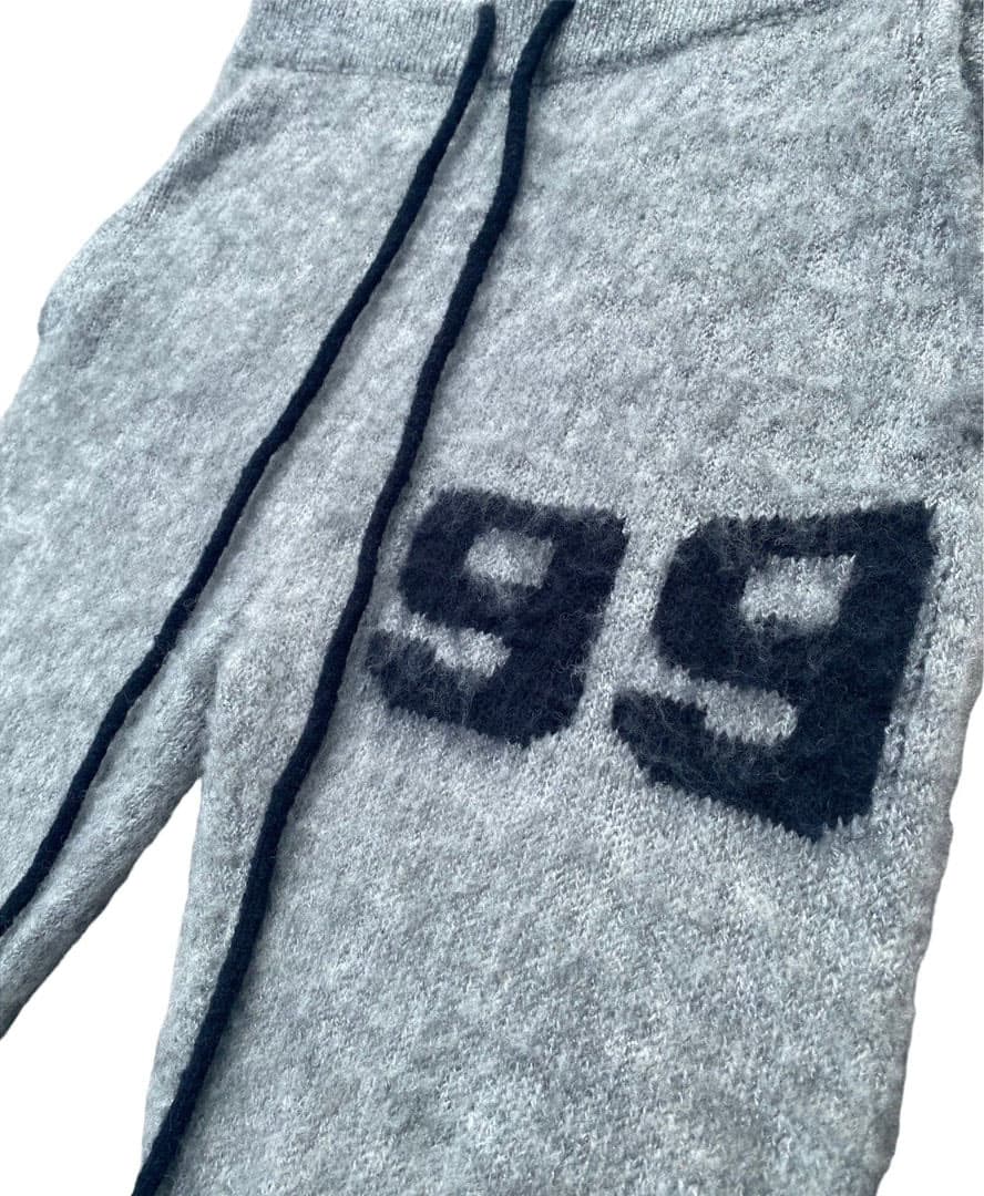 Featuring a subtle dark jacquard “99” graphic, these trousers add visual interest and structure to the thick fabric. The minimal grey palette pairs effortlessly with oversized sweaters, hoodies, and coats, making the trousers a stylish focal point in layered streetwear outfits.