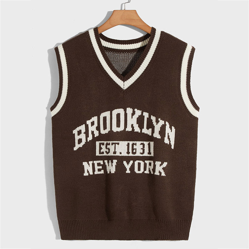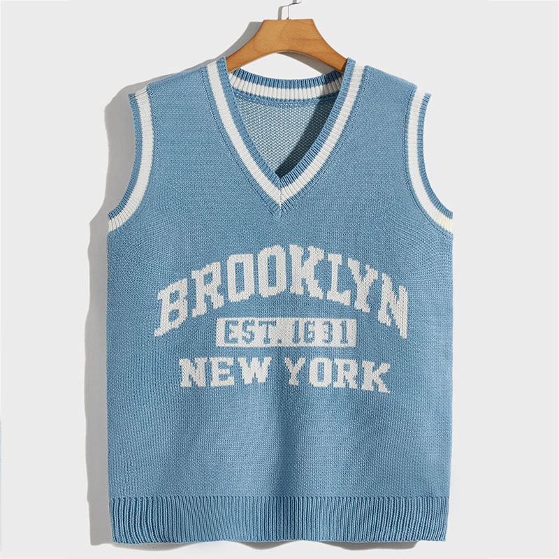 Crafted from high-quality cotton yarn, this men’s jacquard sweater vest offers breathable comfort and long-lasting softness. The bold “Brooklyn, New York” collegiate graphic is fully integrated into the knitted fabric, creating a durable and textured design that stands out.
