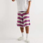 The bold striped pattern gives these shorts a modern streetwear edge. The combination of classic mohair and playful stripes creates a versatile piece that pairs well with casual tees or hoodies. This design enhances visual appeal while staying functional.