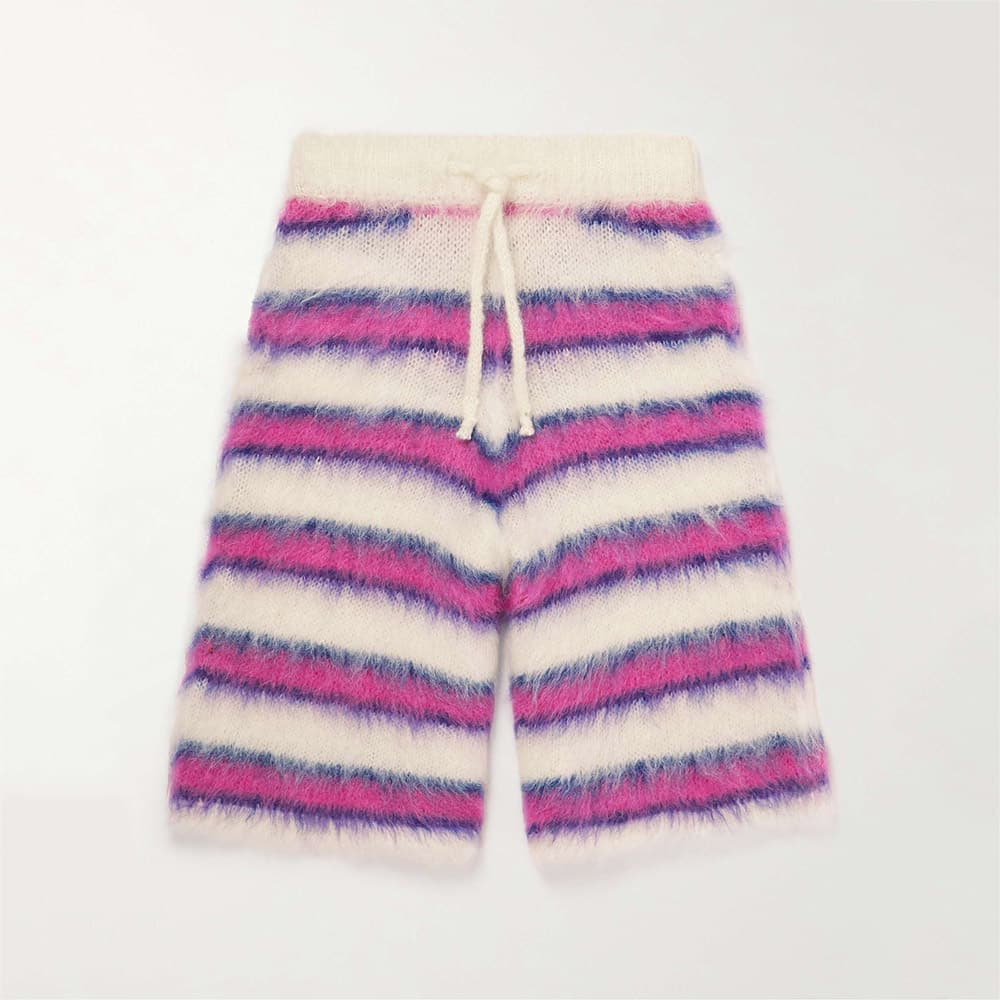 Custom Mohair Striped Knitted Drawstring Shorts for Menmohair knitted drawstring short detailsmohair materials in knitted drawstring shortsmohair knitted drawstring short back showmohair knitted drawstring short model show