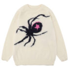 Our custom star spider brushed jacquard knitted pullover sweater is a true expression of craftsmanship and style. The spider motif on the front and web pattern on the back are woven using precise jacquard techniques. The intricate design features black and white yarns blended to create a textured contrast that stands out, offering a truly eye-catching look. This sweater merges fashion and craftsmanship in the most sophisticated way.