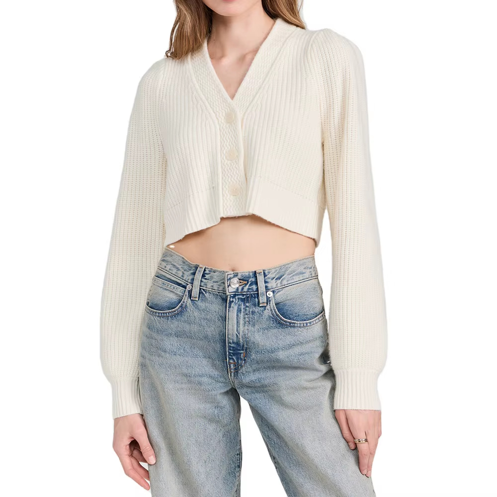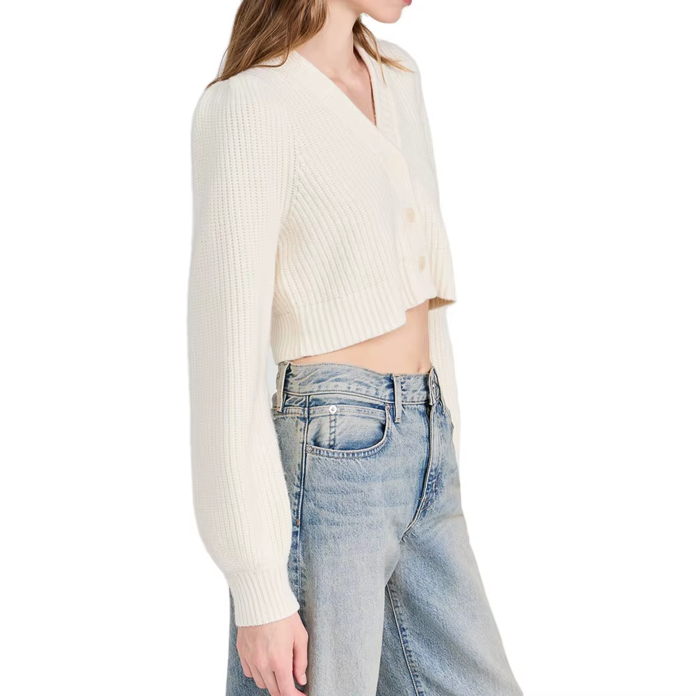 We offer custom designs for this women’s cropped cardigan, allowing you to personalize colors, sizes, and branding for your business. Whether you need small batches for a boutique or large-scale orders, we can provide high-quality, tailored knitwear solutions for your needs.