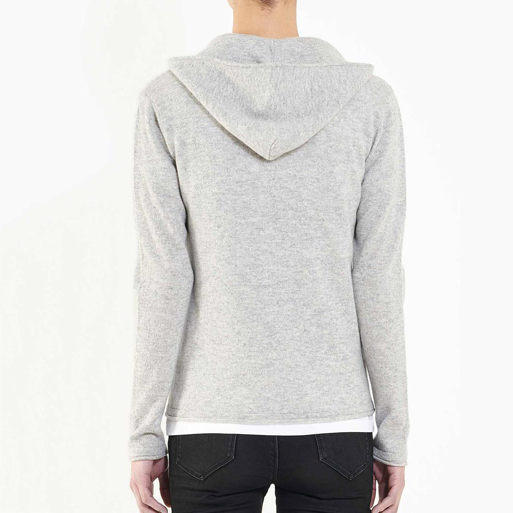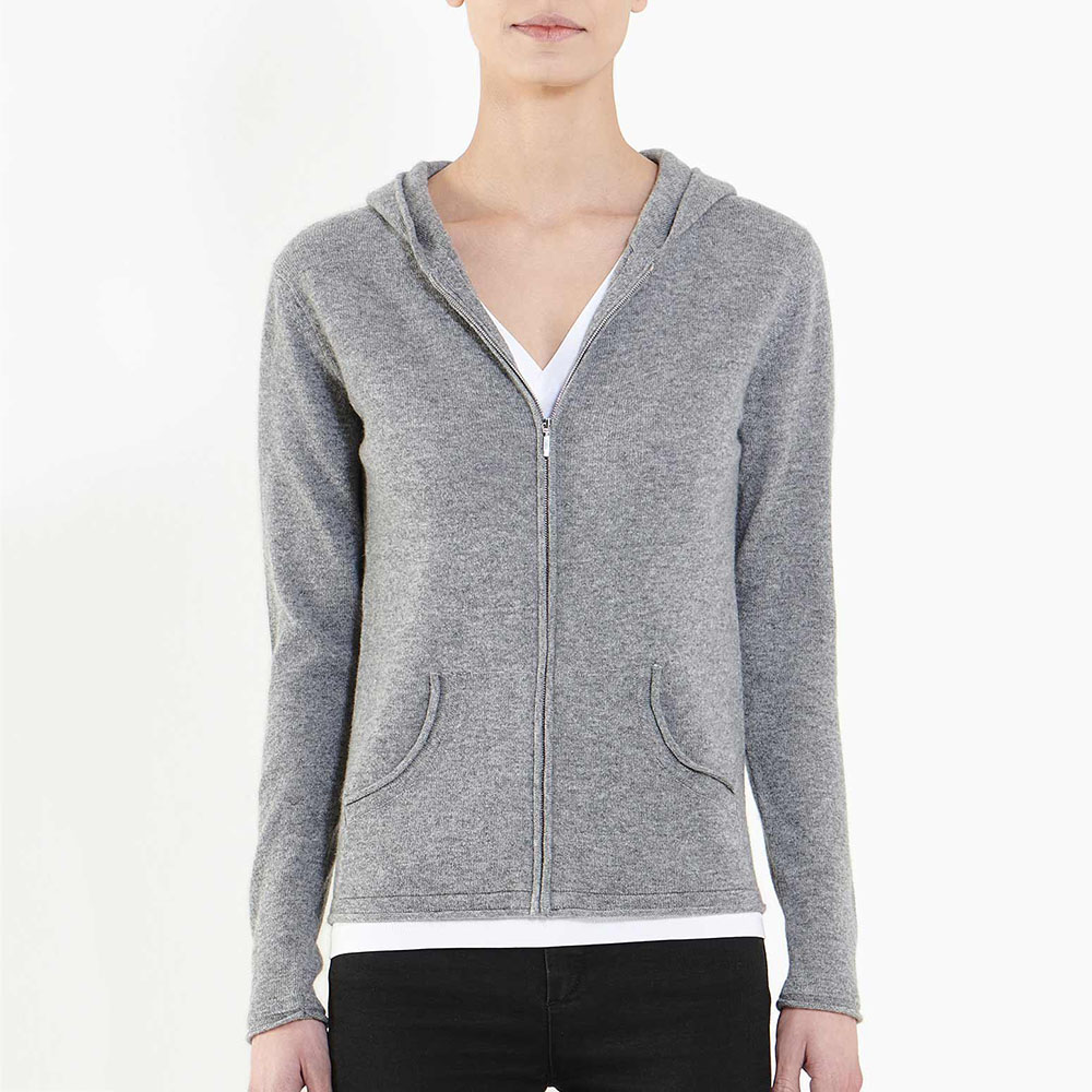 Custom Women Gray Hooded Full Zip Cashmere Cardigan