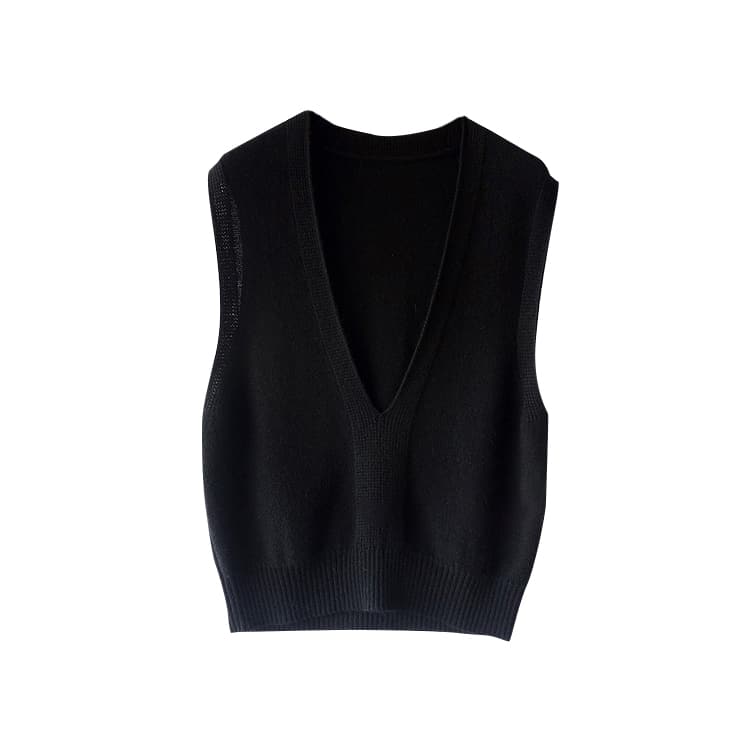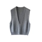 This sleeveless knit vest is made from 100% high-quality wool. It provides warmth without bulk. The soft texture ensures comfort for all-day wear.