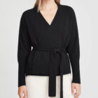Inspired by kimono tailoring, the wrap-front design creates a relaxed yet structured shape. The long self-tie belt defines the waist and allows adjustable styling, giving the wrap cashmere cardigan sweater a versatile, flattering fit across body types. Ribbed trims add subtle structure while maintaining a clean silhouette.