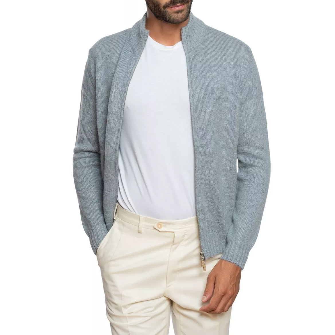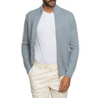 Our zip-up cashmere cardigan uses premium fibers for softness and breathability. The fine knit ensures smooth texture and lasting warmth. Men enjoy comfort without bulk. Slim fit and structured shoulders enhance a clean silhouette. Brands deliver sophisticated, high-quality knitwear for discerning customers.
