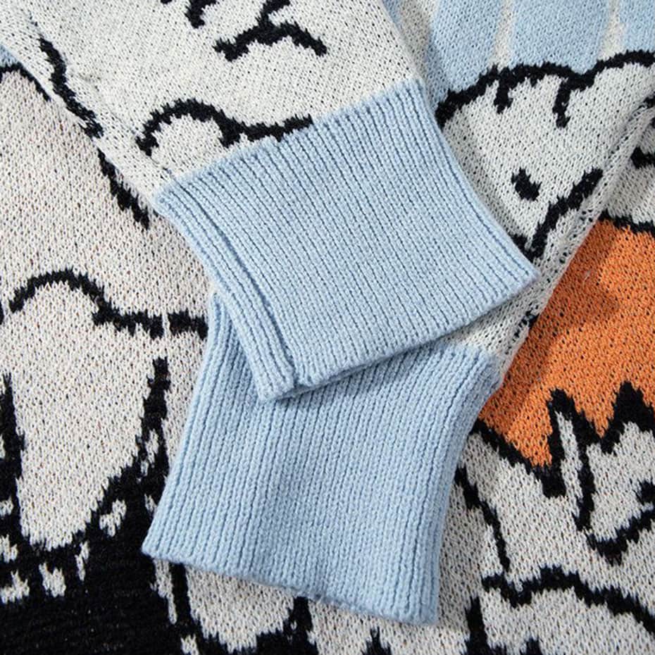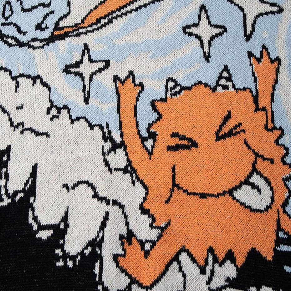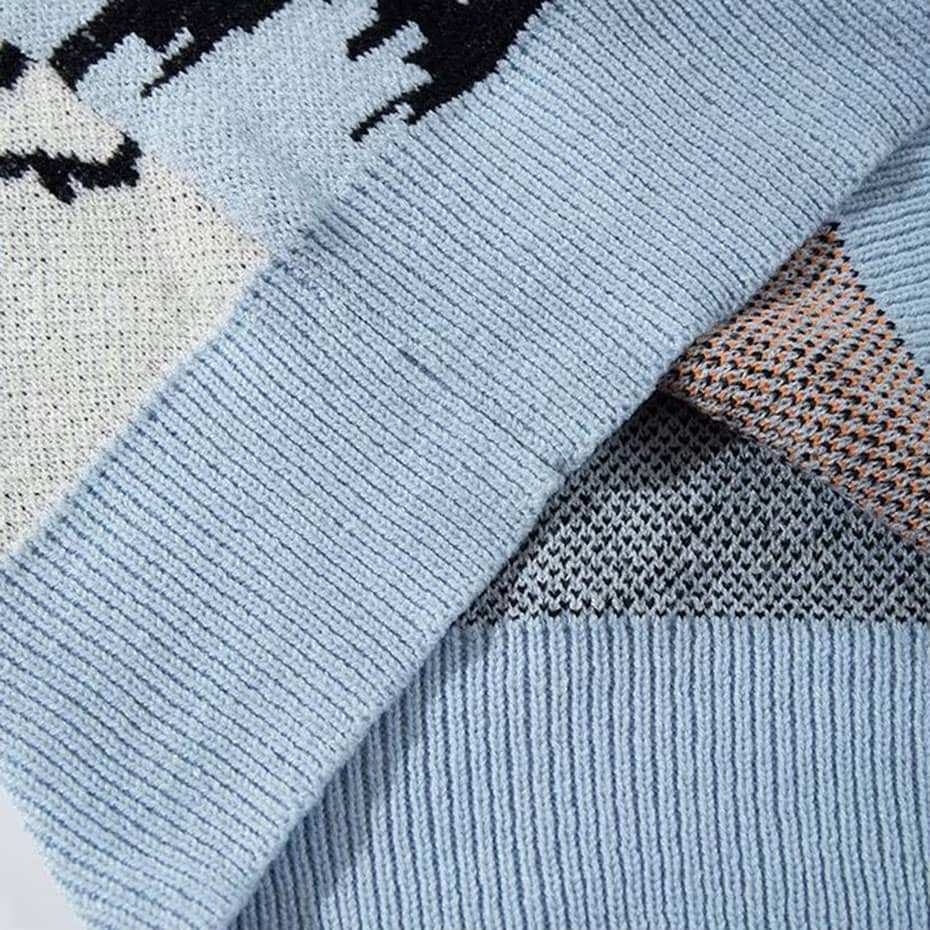 This men sweater is created for modern streetwear collections that value comfort and visual identity. Designed as a jacquard men cartoon sweater, it features a bold knitted graphic that brings personality and creative energy to everyday outfits. The pattern is formed through jacquard knit techniques, giving the design depth and texture instead of a flat surface look.
