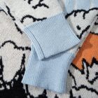 The cartoon-inspired jacquard graphic adds a playful tone while keeping a premium knitted finish. It allows brands to express creativity through yarn and structure. Ribbed cuffs, hem, and neckline help the sweater maintain shape during wear. The knit fabric allows flexibility without losing structure.