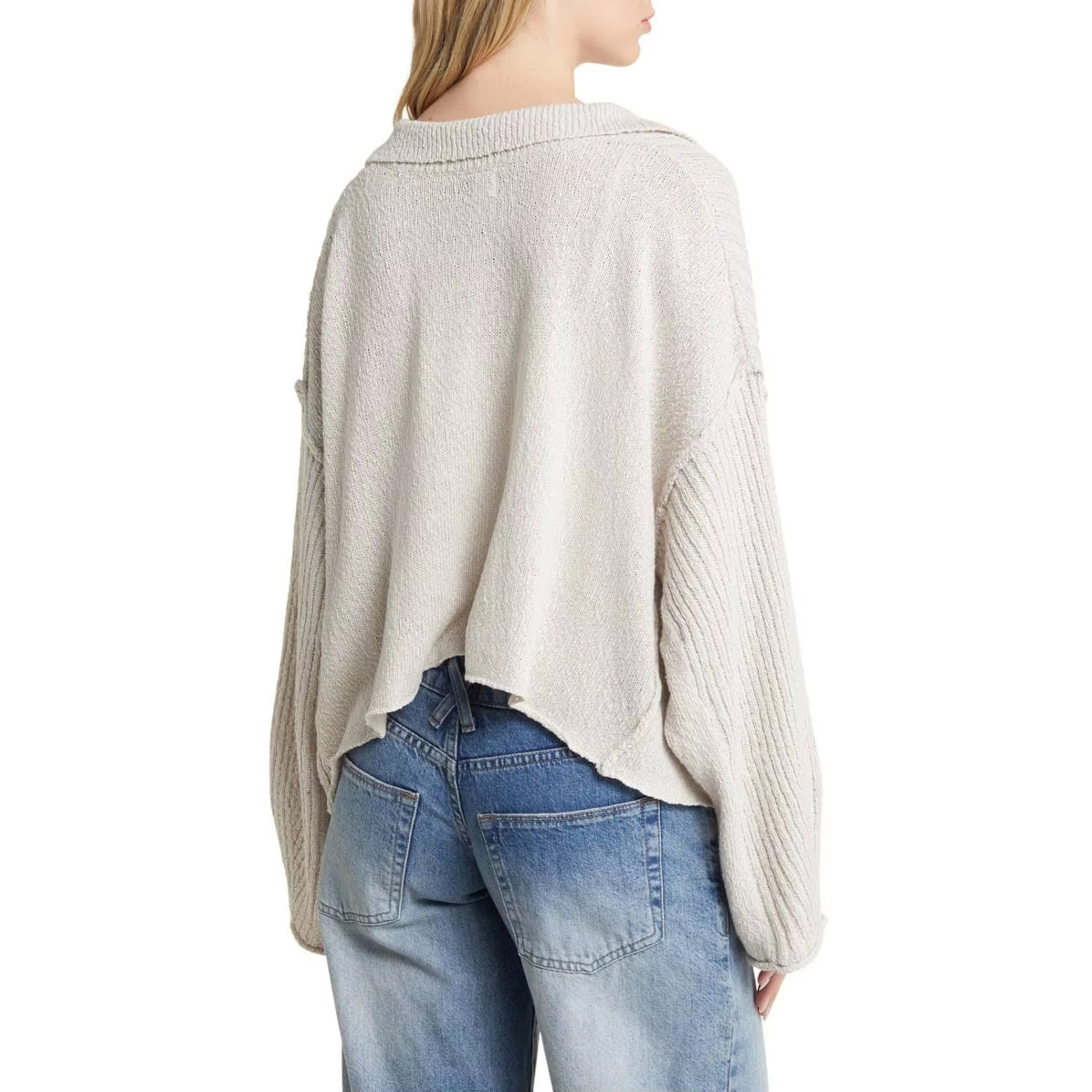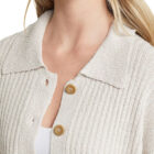 The wide flat shirt-style collar adds a clean, tailored touch, balancing the relaxed knit body. Dropped shoulders and wide sleeves enhance the effortless, laid-back appeal while ensuring easy movement and a comfortable fit.
